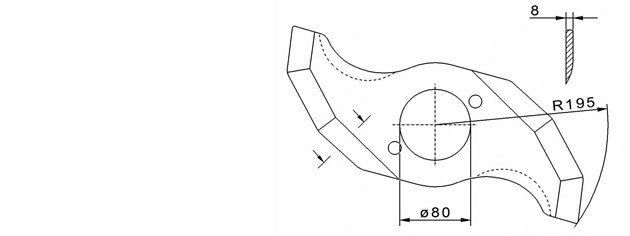 Cuchilla cutter para YANAGIYA, doble ala, espesor 8,0mm, radio 190mm, fijación D80